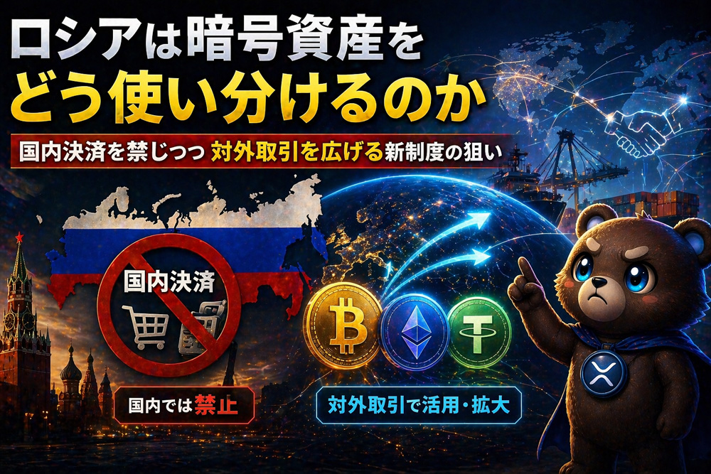 ロシアで暗号資産規制法案の審議が進み、国内での支払いは禁止したまま、外国との取引では利用を認める方向が改めて示された。これは“全面解禁”ではなく、制裁下での国際決済を補強しつつ、国内通貨ルーブルの地位は守るという現実的な … 続きを読む