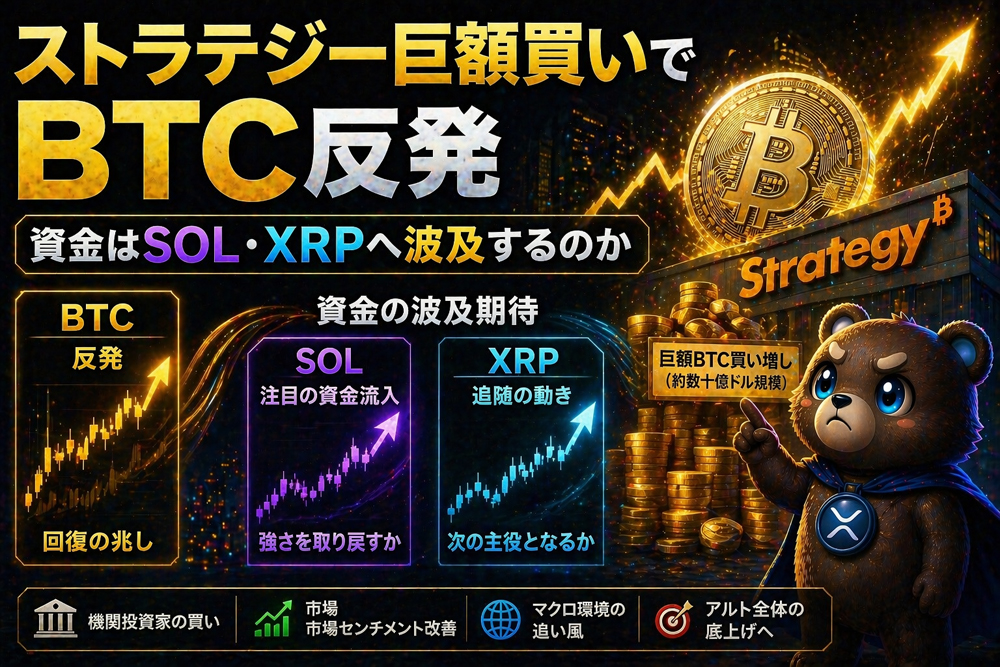 米企業ストラテジーによる約25億ドル規模のビットコイン購入が、市場全体のセンチメントを押し上げました。BTCの上昇に連動し、ソラナ(SOL)やXRPなど主要アルトコインも次の局面に向けた動きを見せています。資金はどのよう … 続きを読む