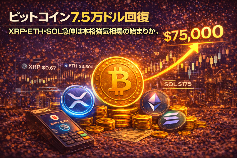 ビットコインが75,000ドル水準を回復し、XRP・イーサリアム・ソラナもそろって上昇したことで、市場には再び強気ムードが広がっています。ただし、これをそのまま「本格的な強気相場の始まり」と見るには、まだ確認すべき条件が … 続きを読む