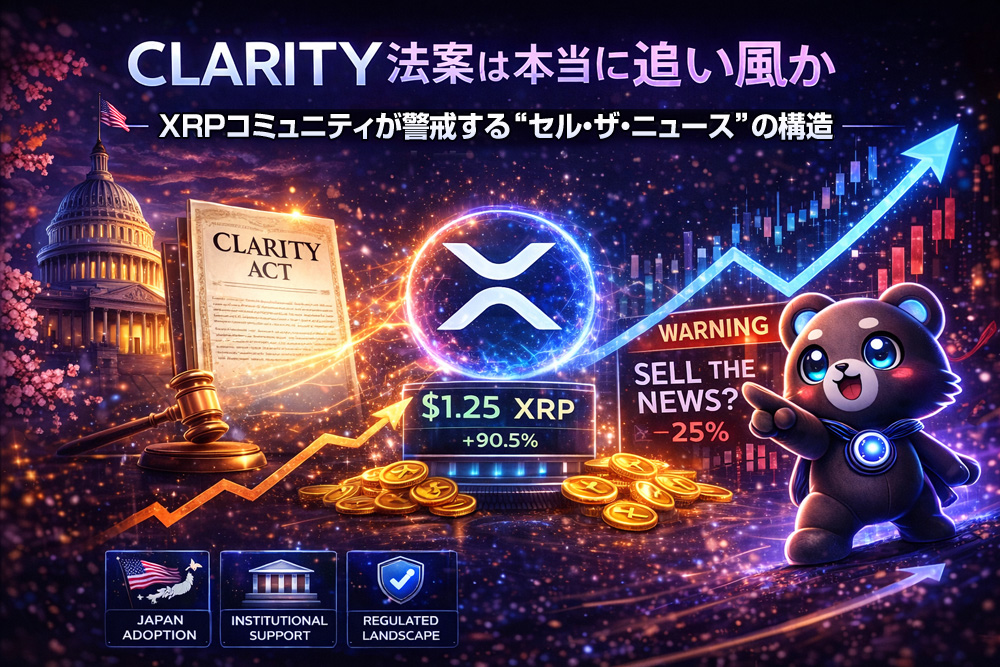 XRPにとって長年の懸念だった規制問題に決着をもたらす可能性があるCLARITY法案。しかしコミュニティの一部は、この材料を素直な強気ではなく「セル・ザ・ニュースの罠」と捉えている。なぜポジティブ材料にも関わらず警戒が広 … 続きを読む