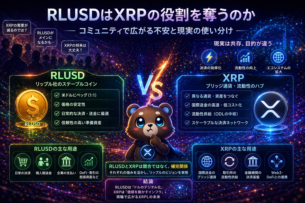 RLUSDはXRPの役割を奪うのか──コミュニティで広がる“不安”と現実の使い分け