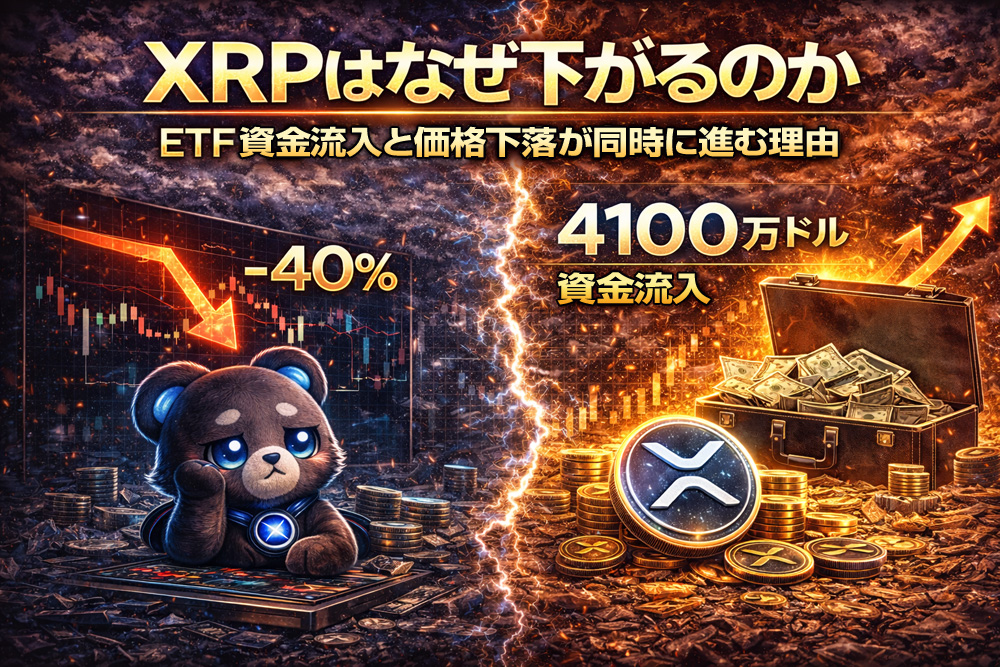 XRPはいま、価格の弱さとETF資金流入の強さが同居する珍しい局面にあります。約40%の下落はたしかに弱材料ですが、4100万ドル規模の流入は、弱い相場の中でも将来性を評価する資金が残っていることを示しています。