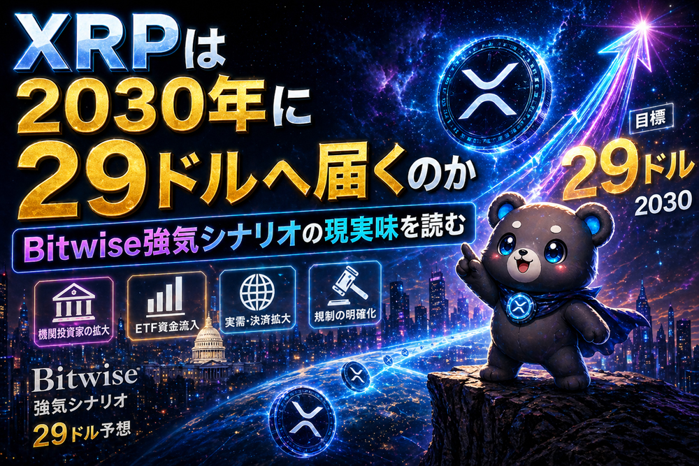 Bitwise CIOの予測として注目されるXRP29ドルシナリオは、2030年までにXRPが金融インフラとして大きな役割を担うことを前提にした強気見通しです。